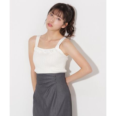 フラワーモチーフ透かしミニケーブルタンクトップ