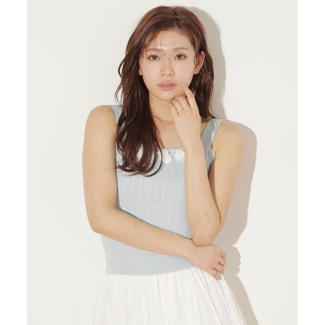 フラワーモチーフ透かしミニケーブルタンクトップ