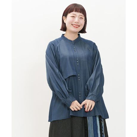 左右アシンメトリーな身頃が特徴的なブラウスです。