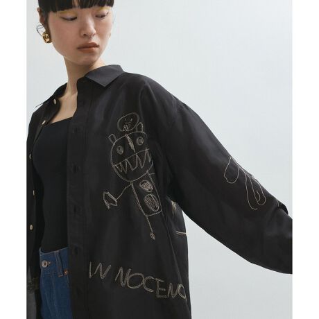 オーセンティックなオーバーシルエットのシャツ型に、子どもが描いたアートを刺繍で表現。