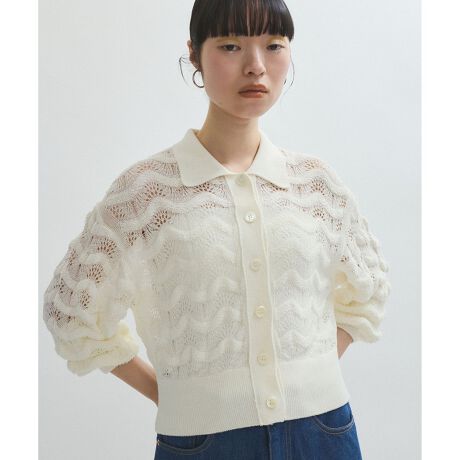 1枚でも着映えする素材に、立体感のある表情が心くすぐるレース編み地のカーディガン。