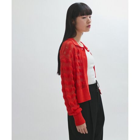 1枚でも着映えする素材に、立体感のある表情が心くすぐるレース編み地のカーディガン。