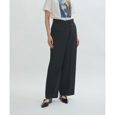 脚が長く綺麗に見えるように重なった部分の分量にこだわった、ラップパンツ。