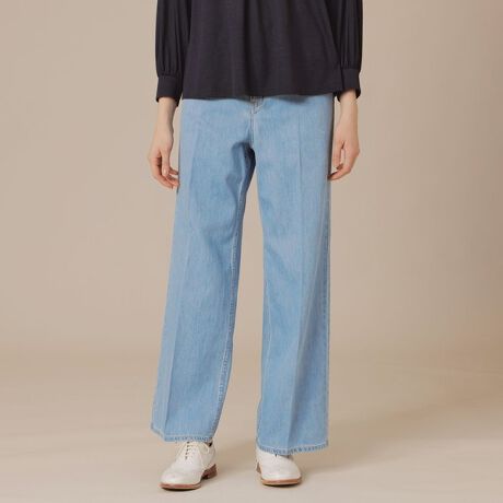 コットンリネンデニムワイドパンツ