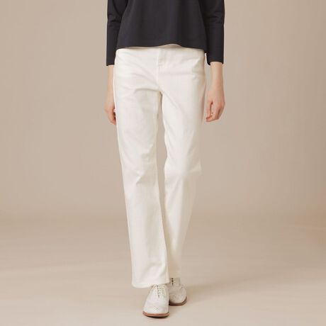 ストレートシルエットのフルレングスパンツです。程よくゆとりのあるスッキリとしたシルエットはラインが綺麗で履き心地もよく、また、オーバーサイズからコンパクトなトップスまで幅広くコーディネートに活躍します。同素材のワイドパンツ(品番:G5R65518)もご用意しております。