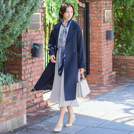 シンプルなデザインなのでキレイめなシーンにもカジュアルシーンにも着回しの利くコートになっています。