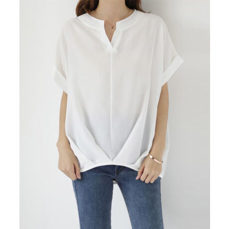 キーネックシフォンブラウス
