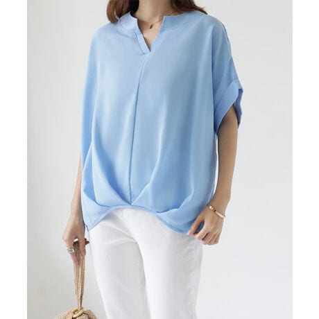 キーネックシフォンブラウス