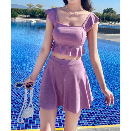 ビスチェ風のトップス×フレアスカートが今っぽくて大人カワイイ水着セットです。