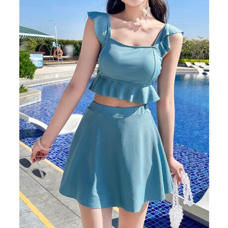 ビスチェ風のトップス×フレアスカートが今っぽくて大人カワイイ水着セットです。