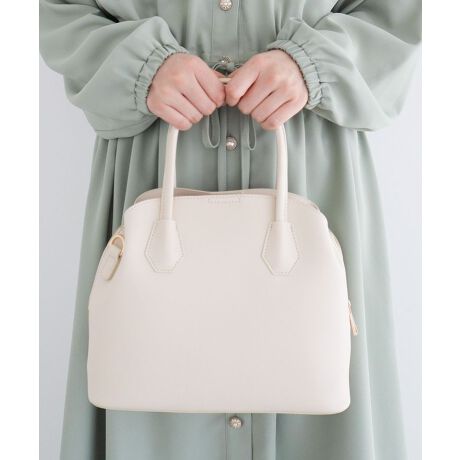 マットなフェイクレザーで仕立たツーハンドルバッグ。丸みのあるフォルムのコンパクトなサイズで普段のお出かけに最適なデザインです。あおりやインナーポケットなど、小さいながらも多収納な作りが嬉しいポイント。大きく開くファスナー間口で出し入れしやすく、シーンに応じて使い分けが可能なショルダーベルト付きです。※モデル着用画像は、光の当たり具合で色味が違って見える場合がございます。※お使いのモニター環境によって商品の色味が違って見える場合がございます。
