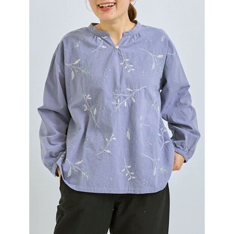 ボタニカル柄の刺しゅうがやさしい風合いを演出するプルオーバー。