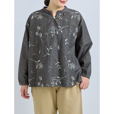 ボタニカル柄の刺しゅうがやさしい風合いを演出するプルオーバー。