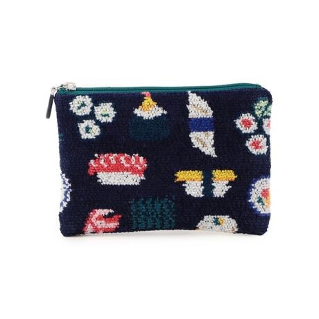 えび、いくら、まぐろなど、さまざまな寿司ネタが描かれた「オースシ」のティッシュポーチ。美しく輝くおすしを眺めているだけでワクワクします。ティッシュを入れる以外に、ファスナー仕様の収納スペースも備えており、カードや小銭、リップやイヤホンなど、さまざまな小物類をまとめるのに活躍します。おすし好きな方へのプレゼントにいかがでしょうか。