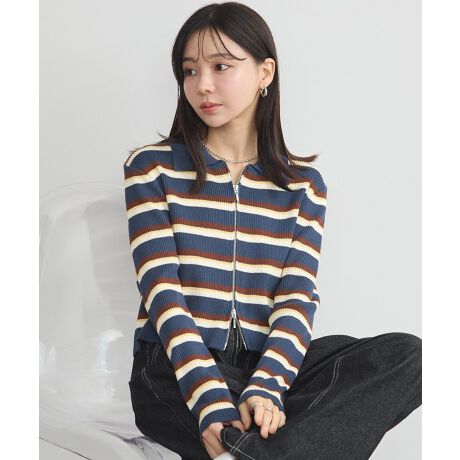 Wジップ仕様で様々なアレンジを楽しめるリブニットカーディガン。フィット感のあるコンパクトなシルエットに長めの袖がバランス良く、トレンドスタイルを後押しします。カジュアルながらも首元の襟が女性らしさを演出。マルチカラーを含めた4色展開で色違いでも揃えたくなる今季おすすめのアイテムです。