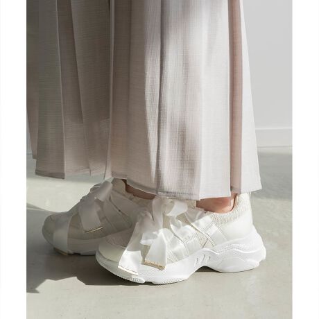 大胆なサテンリボンがレディムードをプラスしてくれるスニーカー。