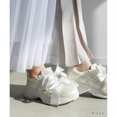大胆なサテンリボンがレディムードをプラスしてくれるスニーカー。