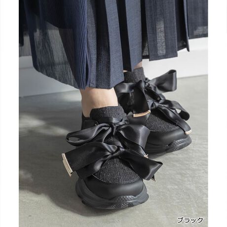 大胆なサテンリボンがレディムードをプラスしてくれるスニーカー。