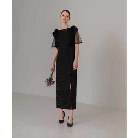 ドレス全体に散りばめられたストーンが、動くたびに輝き放ち高級感を演出。