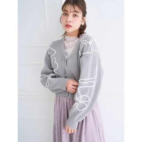 配色のライン刺繍がコーディネートにトレンド感をプラスするカーディガン。