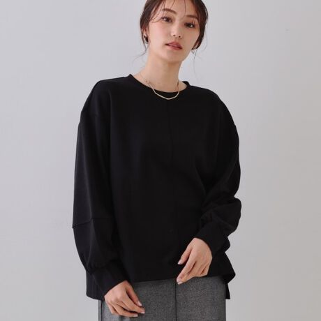 丸みのある袖のフォルムが柔らかな印象を与えるクルーネックカットソー