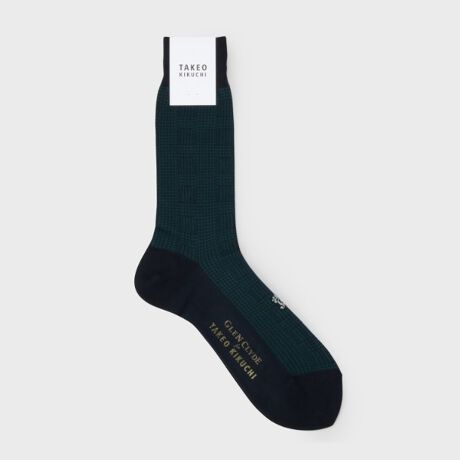 千鳥とグレンチェックを交互に切り替えたデザインのドレスソックス。