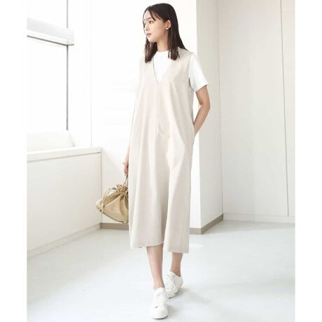 涼しげな風合いのジャンスカは春夏の季節にぴったり。Tシャツやブラウスと合わせるだけで簡単にコーディネートができる便利なアイテム。肌寒い季節には、ニットをインして暖かな着こなしも可能なので、着用期間が長く楽しめます。