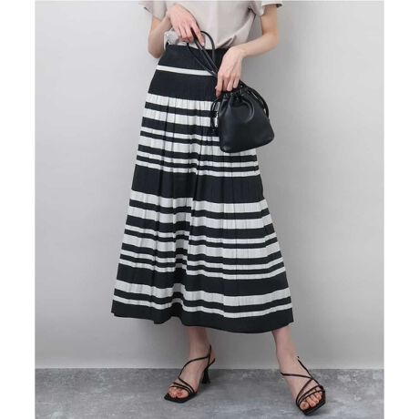 ボーダー柄で着用しましたが、裏に返せば無地の黒いスカートに早変わりで驚きました。1枚で2枚分として着こなしが楽しめる優秀なアイテムです。広がりは出ない下半身スッキリシルエットで、細見えが叶います。