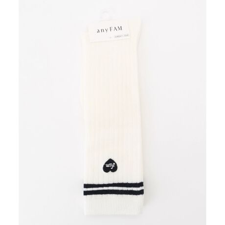 サイドに施されたハートの刺繍がワンポイントの、ハイソックス。ライン入りデザインが、憧れのスクール風コーデもぴったり!オフホワイト(#001)・ネイビー(#075)とどちらも合わせやすいカラー展開で、デイリー使いしやすく、通園・通学に重宝すること間違いなしの優秀アイテムです。