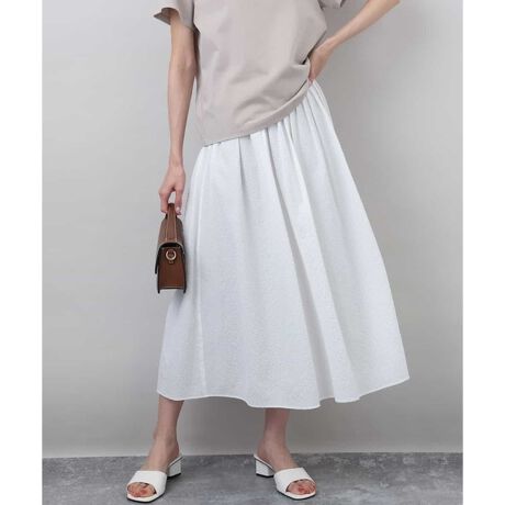 ポコポコとした凹凸感が特徴的なスカートで、ふんわりと裾にかけて広がるシルエットが綺麗です。さらっとした素材で着心地はとても軽く、暑くなる季節にもぴったりです。トップス次第でカジュアルでも綺麗めでもコーディネートできます。