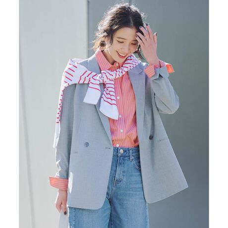 上品なシルエットと程よい着丈で、様々なボトムスとバランスよく着こなせる、ゆったりとしたジャケット。 袖口は重ねスリットをあしらい折り返し可能です。同素材のパンツと合わせてセットアップの着用はもちろん、ビスチェ部分が同素材のカットソーと合わせて今年らしいスタイリングもおすすめです。又ジャケット単品でボトムスをカジュアルにしてもお召いただけるアイテムです。カラーは、抜け感のあるライトグレー(#003)、コントラストが際立つブラック(#005))、洒落感のあるネイビー(#075)の3色展開です。