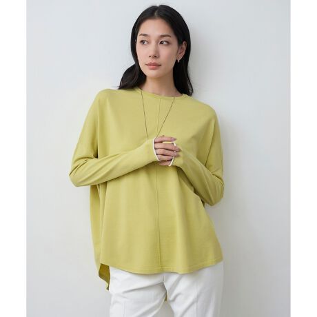 ■デザインオーバーシルエットのボディーと細身の袖とのメリハリのあるシルエットで、『Tシャツ以上セーター未満』の着心地の良いプルオーバーに仕立てています。薄手ながら適度にハリコシ感も併せ持っているので、体のラインを拾いにくく軽やかに快適に着ていただけます。シンプルながらフォルムやシルエットに拘っているので、一枚でもサマ見えすること間違いなし、落ち感もあるのでジャケットのインナートップスとしても着ていただけます。袖口にライン配色を入れ、こなれ感のあるディティールもプラスしました。