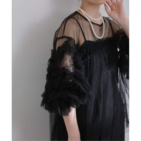 ボリューム感のあるフリルが目を惹くチュールブラウス。