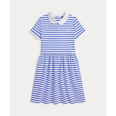 ストレッチの効いたなめらかなポンチ素材を使用し、はっきりしたストライプ、ブロードクロスのクラブカラー、フィット & フレアのシルエットを組み合わせたドレス。・フィット & フレアのシルエット・左胸にシグネチャーのポニー刺繍・ブロードクロスのクラブカラー / 背面中央にボタン付きプラケット・半袖・シャーリング入りのウエスト / サイドシームポケット。※商品の色味は、光のあたり具合など諸条件により色感が多少異なって見える場合がございますので予めご了承下さい。※注意:柄の配置は、商品によって異なります。 【素材】・本体:ポリエステル 69%、レーヨン 29%、ポリウレタン 2% 衿:綿 100% 装飾部分を除く【生産国】中国