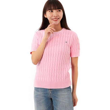 ケーブルショートスリーブクルーネックセーター