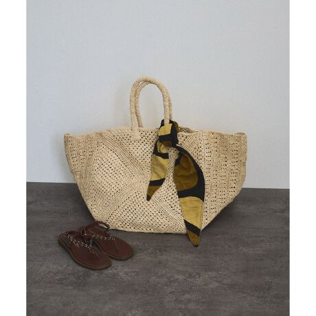 【African Square(アフリカンスクエアー)】ラフィアパッチワーク編みスクエアバッグXL