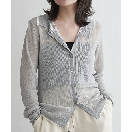 リネンのようなさわやかな風合いを楽しめる麻タッチ配色カーディガン。