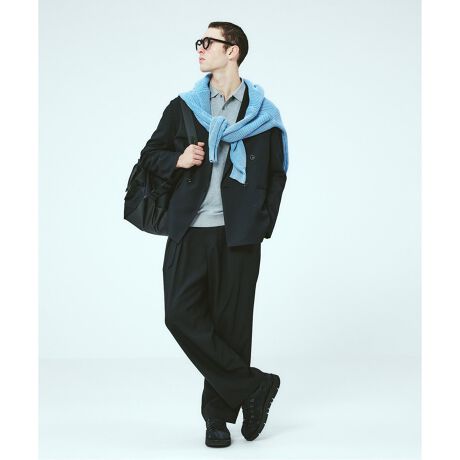 ・同素材のジャケット「25010464013010 ウォッシャブル バスケット ダブルブレストジャケット」と合わせたセットアップも可能。