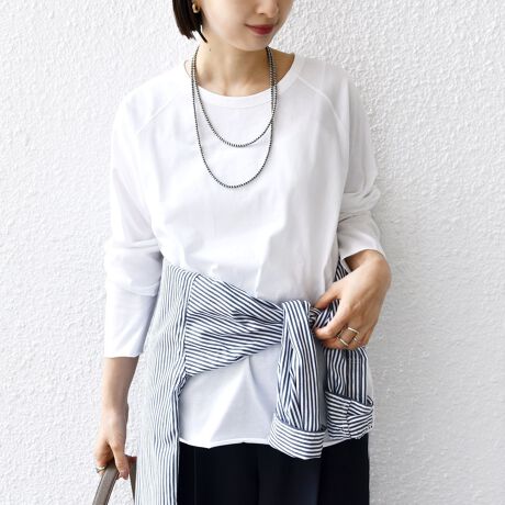 1枚着としては程よい透け感があり、こなれ感のある着こなしが叶います。