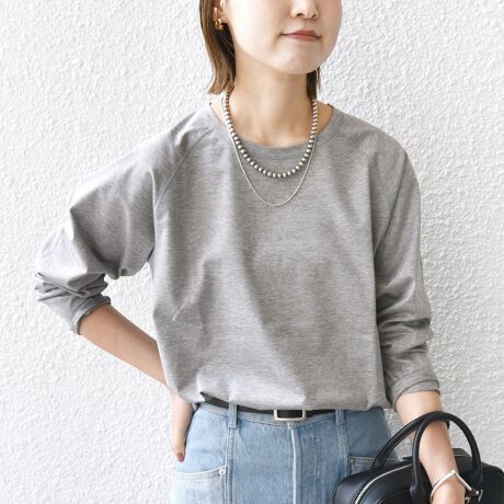 ベースボールTシャツをベースにした、さりげないステッチがポイントになったラグランスリーブトップス。