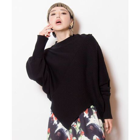 OSMOSISらしいアシンメトリーのシルエットは、リブ編みのアクセントとドルマンスリーブで着痩せ効果も狙える。