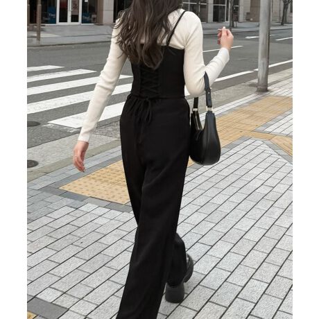 バックレースアップビスチェ+スラックスパンツ set
