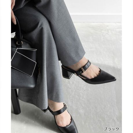 華奢なポインテッドトゥとストラップデザインが足元に抜け感をプラスしてくれるパンプス。