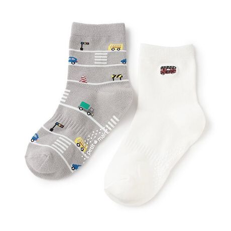 乗り物をモチーフとしたワンポイントと総柄デザインのソックスセットです。