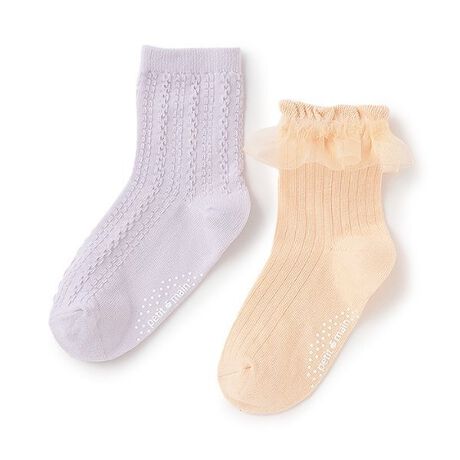 フロート編みとフリルデザインが可愛らしいソックスのセットです。