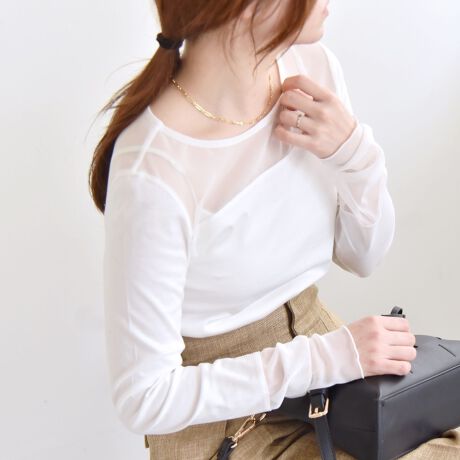 チュールを使ったシアー感のある切り替えデザインがポイントのインナーカットソー。