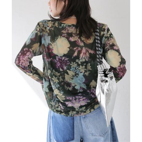 フラワーシアーロングスリーブTシャツ