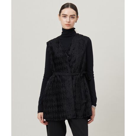 ■デザインややAラインシルエットの軽やかなジレです。共布サッシュベルト付きで、お好みのシルエットで着こなしが可能。前を閉じてチュニックブラウスとして着ていただくのもおすすめです。普段使いはもちろん、綺麗めなスタイルやオケージョンにも対応できる華やかさのある素材とデザイン。一枚で着映えするアイテムです。