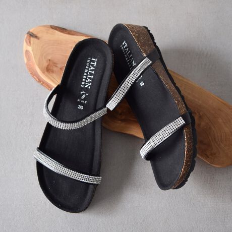 ITALIAN SHOEMAKERS◆4cmヒール◆ダブルラインストーンクッションインソールサンダル
