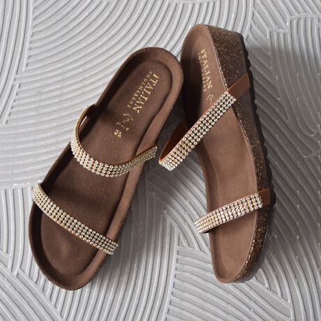 ITALIAN SHOEMAKERS◆4cmヒール◆ダブルラインストーンクッションインソールサンダル